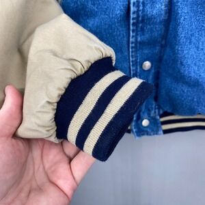 Disney Catalog Winnie the Pooh Vintage Denim Varsity Jacket Blue Tan size Small