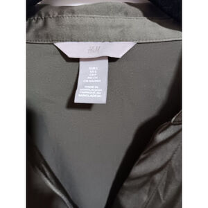 H&M Silky Feel Olive Green Button Front Blouse with Button Cuffs in Olive Green