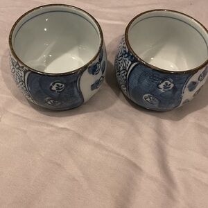 Elegant blue and white ceramic tea cups perfect for adding a touch of sophistication to your home decor. Ideal for tea lovers and collectors.