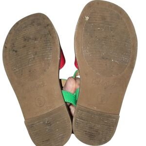 These vibrant kids sandals feature a playful red and green design, perfect for adding a pop of color to any outfit. Comfortable and stylish, they are ideal for everyday wear. 6t.