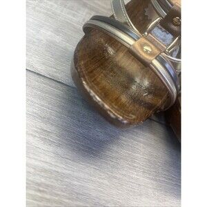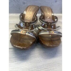 ITALIAN Shoemakers 7.5 Carved Out Wooden Heels Gold Bronze