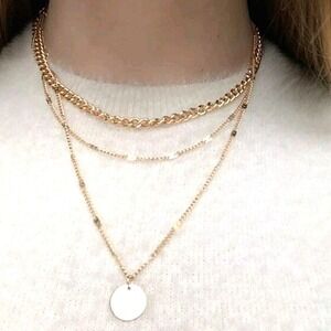 Women's bohemian Gold link chain chunky layer disc pendant dainty delicate necklace set, new no tags