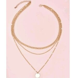 Gold chain charm necklace Boho disc dainty layered link chunky 💖2/$30