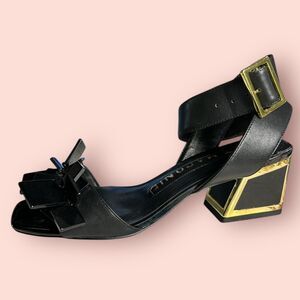 Kat Maconie Black Strappy Block Heels Gold Buckle Abstract Funky Size 7 Size 33