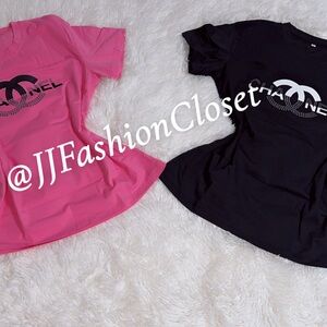 Stylish graphic t-shirts in pink or black. Perfect for casual wear.