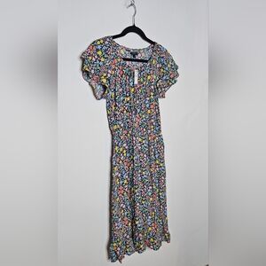 Talbots Ditsy Floral Tie Neck Multicolor Womens 4 Dress Flouncy Midi New