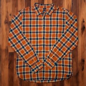 Keywords: Prana, Mens Shirt, Flannel Shirt, Plaid Shirt, Button Down Shirt, Organic Cotton, Long Sleeve, Casual Shirt, Standard Fit, Orange Shirt, Blue Shirt, Medium Shirt