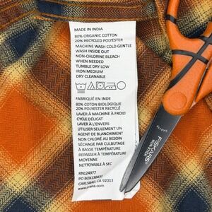 Prana Shirt Mens Medium Orange Plaid Flannel Casual Standard Fit Organic Cotton
