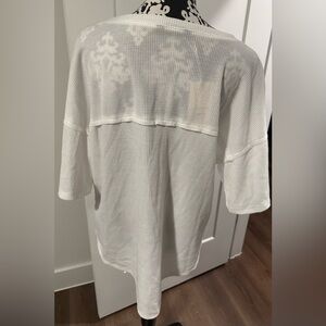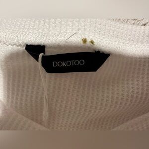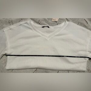 Dokotoo Waffle Knit White V-Neck Short Sleeve Top