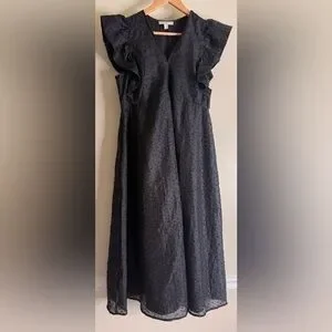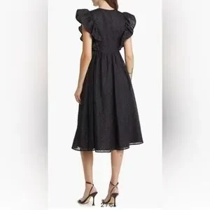 Chelsea 28 Ruffle Cap Sleeve Organza Midi Dress Large Black