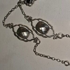 Brighton Silver Tone London Blue Topaz Glass Black Onyx Glass 42" Chain Necklace
