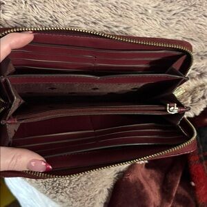 Not only does this large wallet have multiple card slots, billfold compartments and zip pockets at the interior, it has a very pretty exterior. In this case, we think more is more.