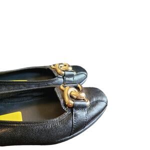 NWT $110 Aerosoles Black soft leather high quality gold link toe detail career flats Sz 5.5