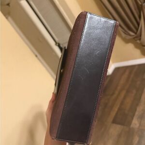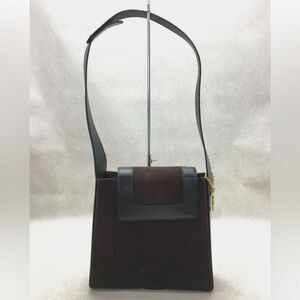 CELINE brown suede leather shoulder bag, logo charm