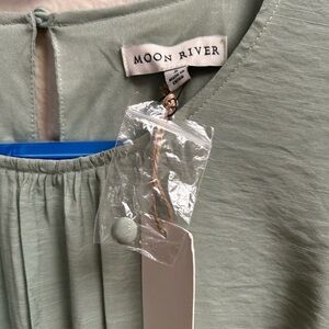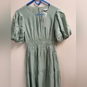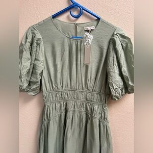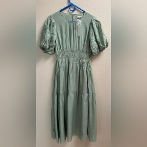 Moon River Sage Green Puff Sleeve Midi Dress Women’s Size S NWT
