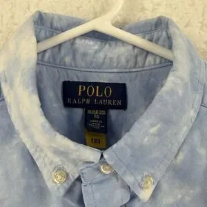 Polo Ralph Lauren Shirt Boys XL 18/20 Blue Tie Dye Short Sleeve Button Down