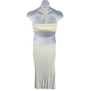 Cult Gaia Cameron Dress Medium Ivory Halter Cutout Twist Knot Ribbed Maxi NWOT