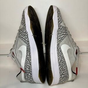 These bad boys dropped as a tribute to Paul Rodriguez’s iconic first Nike SB x Jordan vibes, rocking that legendary grey elephant print overlay on the mudguard and sides, crisp sterling grey/sail upper, white midsole, deep red accents, red aglets, and those bold Jumpman logos embroidered on the heels. Full Jordan Brand x Nike SB crossover energy – elephant print lovers and P-Rod collectors go crazy for these!