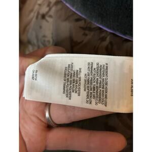 Jacket is white with purple and brown accents. Brown lining. Removable hood. All zippers working. Highly waterproof fabric and construction.