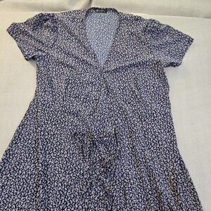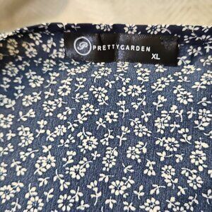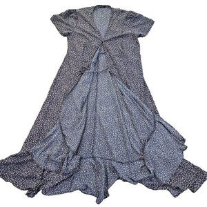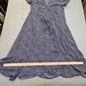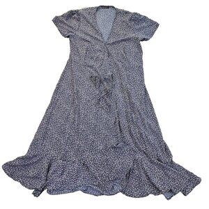 Pretty Garden Wrap Maxi Dress Cottagecore Size XL Navy Mini Floral Ruffle Boho