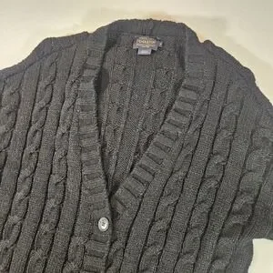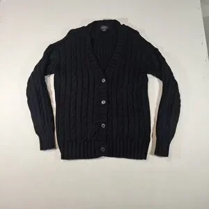 Pendleton Wool Cardigan Sweater Shetland Fisherman V-Neck Women's Small Black