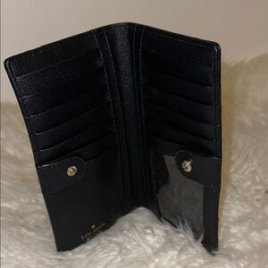 Chic black wallet by Kate Spade. Features elegant silver studs. Ideal for organizing essentials.