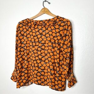 Studio B By Bobeau Orange Floral Print Boxy 3/4 Sleeve Blouse Small S