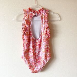 Janie and Jack Floral Ruffle Trim Swimsuit. Size 12. Gently worn, good condition. Stock photos are for fit reference only.