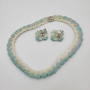 Vintage 1950s Aqua Sequin Necklace & Earrings Set