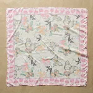 Sundance Exclusive Bex Hair Bandana featuring a beautiful butterflies 🦋 birds & mushrooms design with a contrasting border print. This delightful accessory adds a charming touch to any outfit, wear it in your hair, around your neck, or anywhere you want to add a bit of flair.