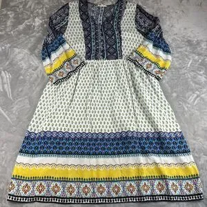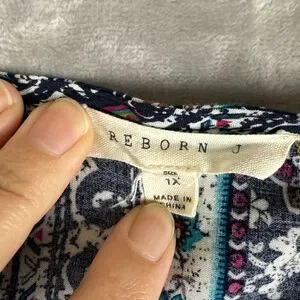 Reborn J Boho Dress Womens 1X Colorful Pattern Button Front Flowy Elephant(1003)