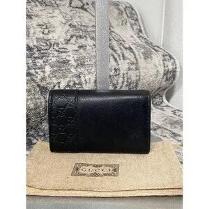 Gucci Guccissima Trifold Leather Key Case in Black