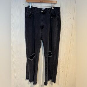 PRINCESS POLLY Zaneta Ripped Jeans in Washed Black Denim Sz 12 Straight