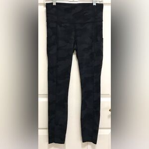Lululemon Fast and Free high-rise tights are in EUC. Incognito Camo Deep Coal Multi (charcoal/black) with side pockets, 5 convenient slip pockets across back waist band (pics 5 and 8) and raw bottom hem (pic 14). 27” inseam from a smoke free home.