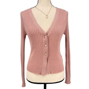 Wild Fable Pink Ribbed Knit Long Sleeve Button Up Cardigan Sweater