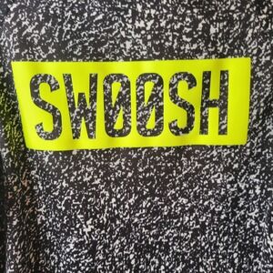 Unleash your inner athlete with this striking Nike Dri-FIT hoodie. Dressed in a speckled black and white pattern, the bold volt green Swoosh on the chest adds a vibrant pop of color. The back features a unique 'SWOOSH' graphic, making a stylish statement whether you're heading to the gym, running errands, or simply relaxing at home.