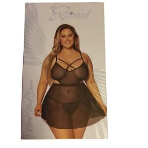 PLUS SIZE LINGERIE 1X 2X 3X BABYDOLL & CROTCHLESS PANTY SET Black