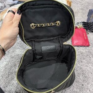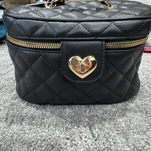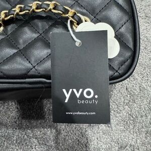 Brand new YVO Beauty quilted vanity bag with gold hardware and a cute heart-shaped clasp. This structured case is perfect for makeup, skincare, or travel essentials. Still has the original tags.