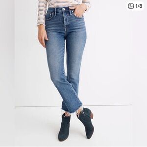 Flattering high-rise Madewell jeans in the sought-after Cali Demi Boot style. Designed with a slim fit through the hip and thigh and a subtle bootcut opening at the hem. Features a cropped ankle length with a raw, frayed hem for an effortless modern-vintage look. Classic medium blue wash that pairs easily with boots, sneakers, or sandals.