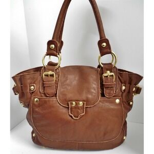 Linea Pelle Soft Brown Leather Studded Tote Bag