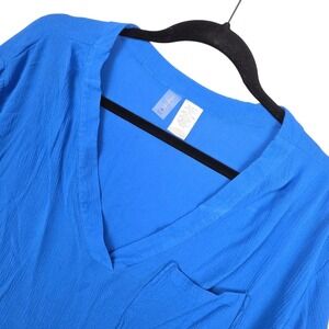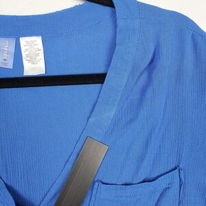 Mynah Womens Swim Coverup M Blue Long Sleeve V-Neck Cruise Beach 100% Rayon