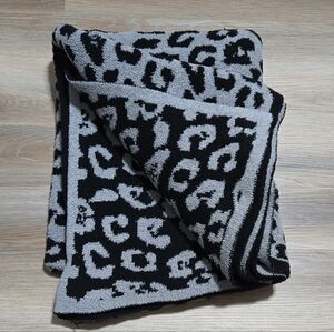 In clean pre-owned condition, Decor leopard print blanket in black and gray. Perfect for adding a stylish touch to any room. Barefoot Dreams Cozy Chic Barefoot in the Wild Leopard Blanket Throw, approximately 54 X 72.
