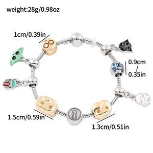 925 Sterling Silver Plated Disney Star Wars Chibi Ensemble Themed Charm Bracelet