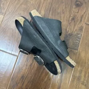 Birkenstock Arizona Big Buckle Sandal Womens US 10 41 Black Silver Oiled Leather
