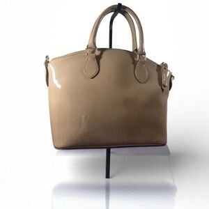 Dooney & Bourke Patent Leather Domed Satchel Bag-Tan-Classic Style Purse