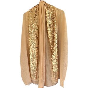 New with tag; Silk/wool blend; fringed edges; gorgeous gold sequins; approx. 25.5” x 73” long; retails @$275.00; smoke free home. k