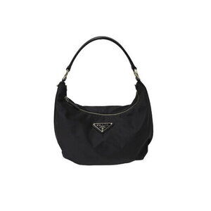 Prada One Shoulder Handbag Triangle Plate Black Nylon Includes a Certificate of Authenticity!