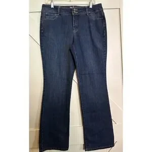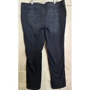 These Lane Bryant straight leg jeans are a classic addition to any wardrobe. The dark wash denim and solid pattern make them versatile for any occasion. The 5-pocket design, featuring a button and zipper closure, provides ample storage space for your belongings.