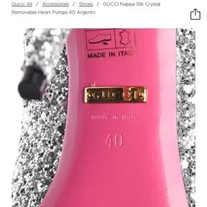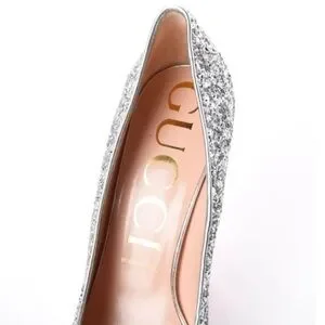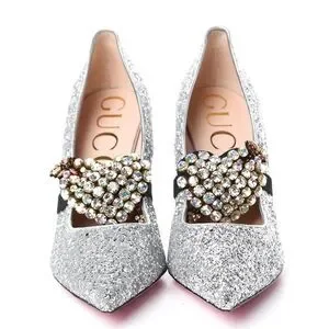 Gucci Argento silver glitter pumps with removable heart crystal detail