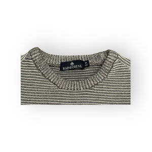 Rainforest Men’s Gray Striped Crewneck Sweater Size M Cotton Knit Pullover